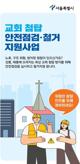 서울시는 이달 중순까지 서울시 소재 교회 7,919개소에 대한 전수조사를 통해 첨탑 설치 여부를 확인한다. 이후 높이 4m가 넘는 첨탑, 노후한 첨탑을 대상으로 구조전문가와 8월 말까지 합동 안전점검을 실시한다.