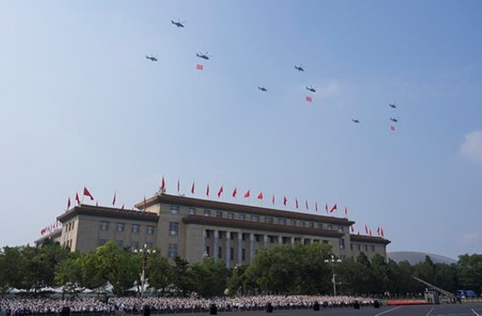 ▲ 3일 국기 호위 비행편대가 천안문(天安門) 광장 상공을 통과하고 있다. (사진/신화통신)