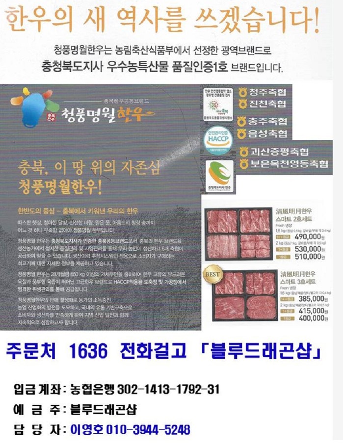 충북, 이 땅 위의 자존심 청풍명월한우!