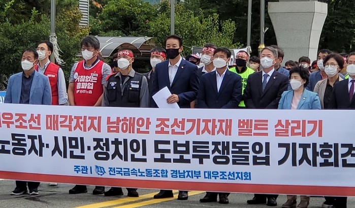 대우조선 노조 간부들과 함께 이들이 지나는 지자체에 있는 조선업체 노조원, 지방의원들도 합류해 힘을 보탠다.