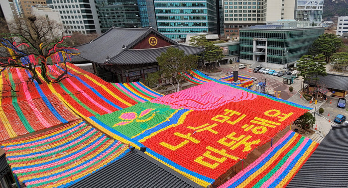 [열린의정뉴스 = 김윤영 기자] 부처님오신날(5월 8일)을 앞두고 18일 오후 서울 종로구 조계사에 연등이 설치되어 있다. 2022.3.18