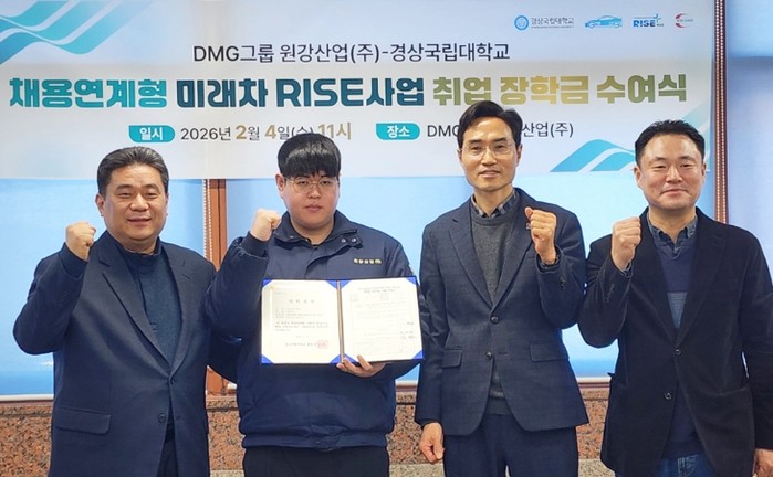 [코리아 이슈저널=김태훈 기자] 경상국립대학교는 2월 4일 오전 11시 함안군에 소재한 원강산업(주) 회의실에서 ‘채용연계형 미래차 RISE사업 취업 장학금 수여식’을 개최했다.
