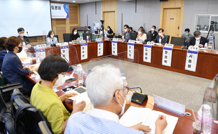 ▲ 5일 오후 서울 여의도 국회 의원회관에서 열린 5세 조기 입학 반대를 위한 긴급토론회에서 참석자들이 발제를 듣고 있다. 이날 회의에는 더불어민주당 국회 교육위원회 소속 유기홍, 강민정, 도종환, 서동용 의원 등이 참석했다. 2022.8.5 [국회사진기자단]