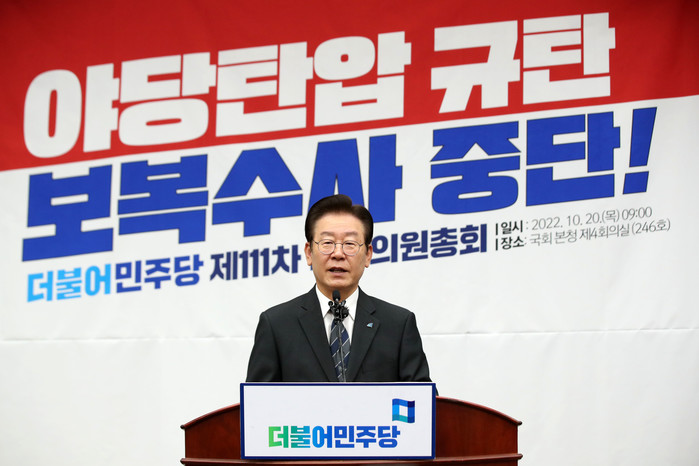 | ▲ 더불어민주당 이재명 대표가 20일 서울 여의도 국회에서 열린 더불어민주당 긴급 의원총회에서 발언하고 있다. 2022.10.20 [국회사진기자단] |