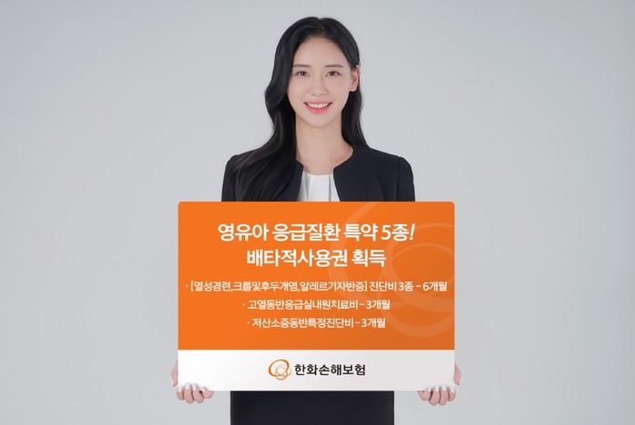 [코리아 이슈저널 = 이창환 기자] 한화손해보험(대표이사 박찬혁)은 영유아에게 주로 발생하는 응급 질환에 대한 보장을 강화한 신규 특약 5종 모두가 생명보험협회로부터 배타적사용권을 인정받았다고 16일 밝혔다.