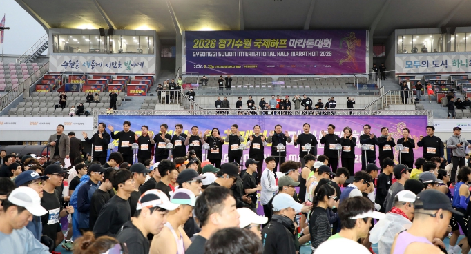 [코리아 이슈저널=홍춘표 기자] 수원특례시의회는 2월 22일 오전 수원종합운동장에서 열린 '2026 경기수원 국제하프마라톤대회'에 참석해 시민들과 함께 생활체육의 가치를 나누고 대회의 성공적인 개최를 응원했다.