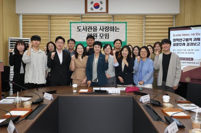 [코리아 이슈저널=홍춘표 기자] 청주시의회 의원 연구단체인 '도서관을 사랑하는 의원 모임'은 15일 청주시 공공도서관의 미래발전방향 모색을 위한 설문조사 결과 보고회를 개최했다.