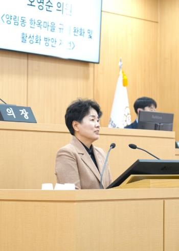 [코리아 이슈저널=홍춘표 기자] 오영순 광주 남구의회 의원은 25일 제319회 임시회 1차 본회의에서 5분 발언을 통해 양림동 한옥마을의 과도한 규제로 인해 지역 활력이 저해되고 있다며, 규제 완화와 활성화 방안을 제시했다.
