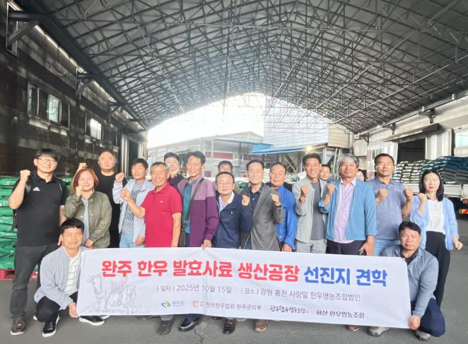 한편, 이번 견학은 완주군, (사)전국한우협회 완주군지부, 완주한우협동조합, 화산한우영농조합이 공동 주관으로 추진했으며, 완주군 축산업의 선진화와 지역 축산농가의 경쟁력 제고를 위한 발효사료 가공시설 도입 가능성을 모색하는 계기가 됐다.