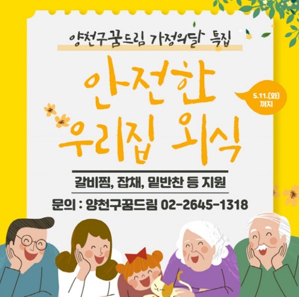 [열린의정뉴스 = 김진성 기자] 서울 양천구(구청장 김수영) 꿈드림에서는 5월 가정의 달을 맞이해 학교 밖 청소년을 대상으로 '안전한 우리 집 외식'을 진행한다.