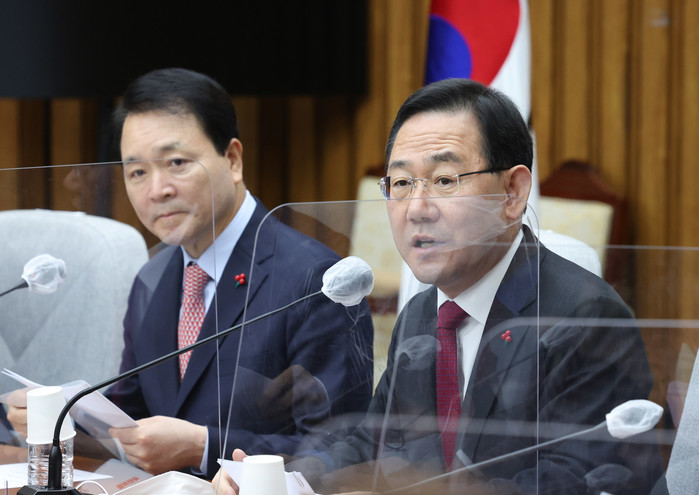 | ▲ 국민의힘 주호영 원내대표가 6일 오전 국회에서 열린 원내대책회의에서 발언하고 있다. 왼쪽은 성일종 정책위의장. 2022.12.6 |