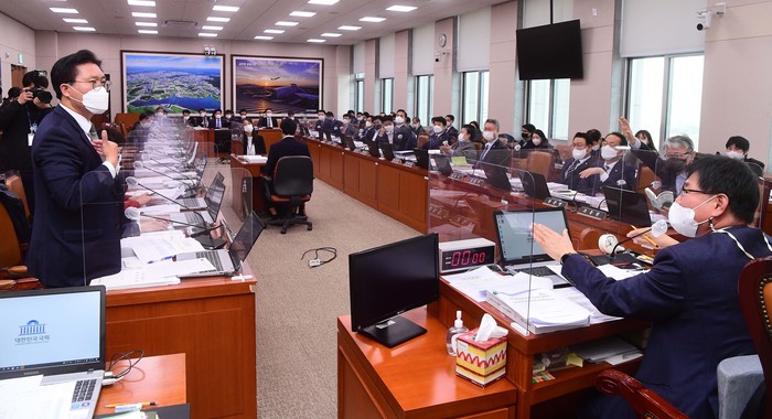 [열린의정뉴스 = 최준석 기자] 더불어민주당의 이른바 '대장동 방지법'을 둘러싼 여야 공방으로 22일 국회 국토위가 파행을 빚었다.