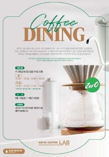 커피 다이닝은 6월 13일부터 8월 31일까지 매주 금요일과 주말(토·일)에 운영된다. 금요일은 오후 3시와 7시, 주말은 오후 1시와 5시에 하루 2회씩 진행되며, 회차별 2명에서 6명까지 참여 가능하다. 참여는 네이버 ‘이디야커피랩 예약하기’ 플랫폼에서 사전 예약 후 가능하다.
