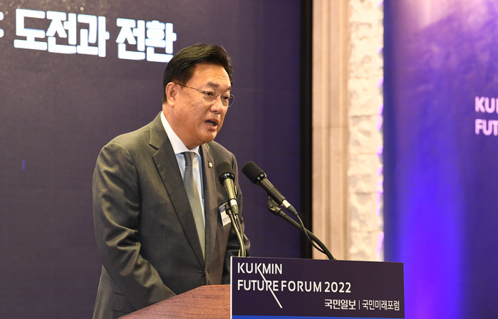 | ▲ 국민의힘 정진석 비상대책위원장이 12일 서울 여의도 국민일보 빌딩 컨벤션홀에서 열린 '2022 국민미래포럼'에 참석해 축사를 하고 있다. 2022.10.12 [국회사진기자단] |