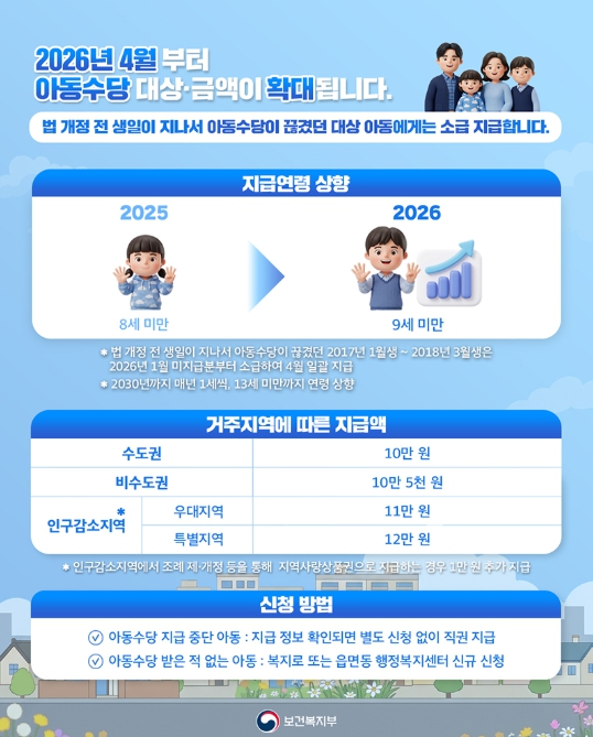 보건복지부, 2026년 4월부터 아동수당 더 넓게, 더 많이!