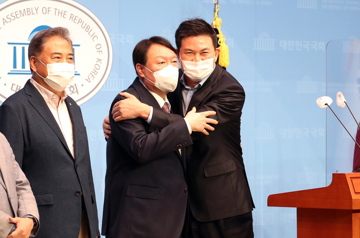 | ▲ 국민의힘 윤석열 후보(가운데)와 김태호 의원(오른쪽) [연합뉴스 자료사진] |