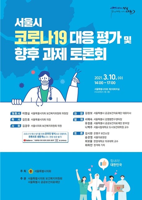 3월 10일 개최되는 1차 토론회는 서울특별시의회 보건복지위원회와 서울특별시 공공보건의료재단이 함께 주관하며, 보건분야를 중심으로 지난 1년간 서울시의 코로나19 발생추이와 대응현황을 평가하고, 향후 재난적 감염병 대응에 대한 정책대안을 도출하게 된다.