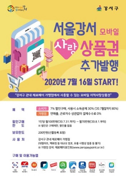 지난 4월 1일 50억원 규모로 발행된 강서사랑상품권은 주민들의 호응에 힘입어 8일 만에 조기 완판됐다.