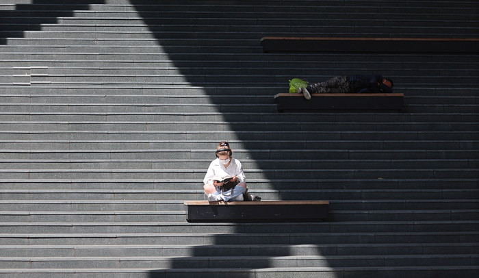 [열린의정뉴스 = 김윤영 기자] 한낮 서울 기온이 14도까지 오르며 포근한 날씨를 보인 1일 오후 가벼운 옷차림의 시민이 의자에 앉아 책을 읽고 있다. 2022.4.1
