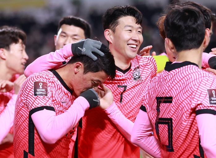 [열린의정뉴스 = 김윤영 기자] 11일 2022 카타르 월드컵 아시아 최종예선 대한민국과 아랍에미리트(UAE)의 경기. 전반 대한민국 황희찬이 패널티킥 선제골을 넣은 뒤 손흥민과 함께 기뻐하고 있다. 2021.11.11