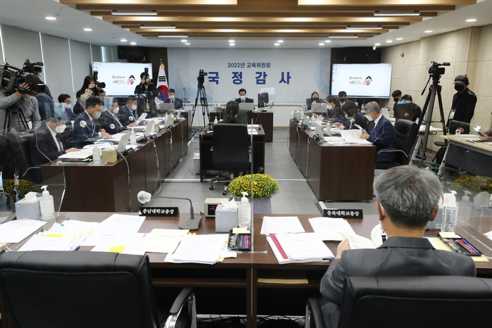 | ▲ 13일 오전 세종시교육청에서 국회 교육위원회의 충남대, 충남대병원, 충북대, 충북대 병원 등 국정감사가 열리고 있다. 2022.10.13 |