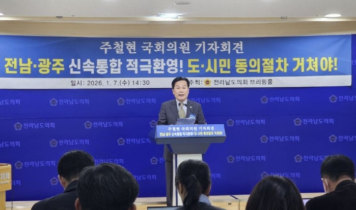 특히 주 의원은 이재명 정부의 ‘5극 3특’ 지역균형발전 전략을 언급하며, “광주·전남이 하나의 메가시티로 도약하는 것은 단순한 행정구역 개편을 넘어 공정 성장과 국가 균형발전의 토대를 만드는 일”이라며 “광주·전남 통합이 이재명 정부 국정철학의 핵심 성공 모델이 되도록 모든 역량을 쏟겠다”고 밝혔다.