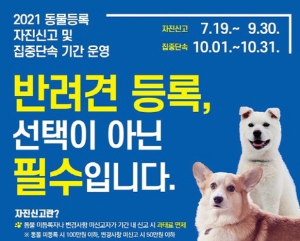 구는 9월까지 자발적인 등록을 유도하고 신고 기간 이후인 10월부터는 반려동물 미등록자, 정보변경 미신고자를 집중적으로 단속할 방침이다.