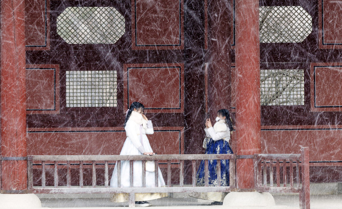 [열린의정뉴스 = 김윤영 기자] 17일 오후 서울 경복궁에 눈이 내리고 있다.  2022.1.17