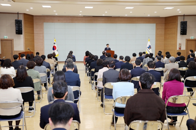 [코리아 이슈저널=홍종수 기자] 윤건영 충청북도교육감이 3일 오전, 화합관에서 11월 월례조회를 개최했다.
