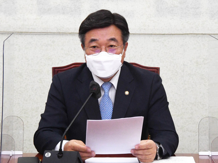 | ▲ 더불어민주당 윤호중 원내대표가 19일 오전 국회 원내대표 회의실에서 열린 국정감사대책회의에서 발언하고 있다. 2021.10.19 [연합뉴스 제공] |