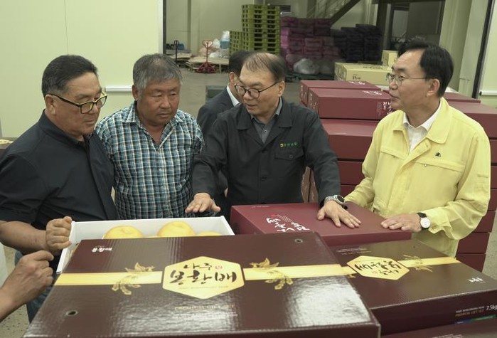 [코리아 이슈저널=김종오 기자] 윤병태 나주시장이 추석 명절을 앞두고 배 출하 현황을 점검하고 현장 관계자들을 격려했다.