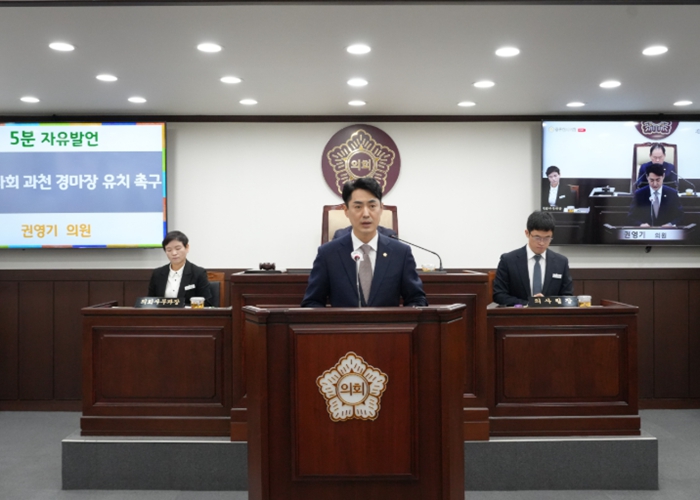 [코리아 이슈저널=홍춘표 기자] 동두천시의회 권영기 의원(국민의힘, 나선거구)은 25일 제344회 임시회 개회식에서 5분 자유발언을 통해 정부의 안보 희생에 대한 실질적 보상을 촉구하며, ‘한국마사회 경마장 및 말산업 복합단지’의 동두천 유치를 촉구했다.