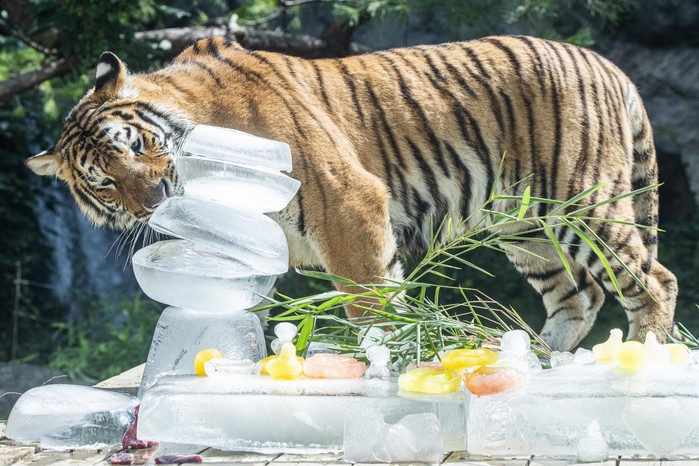 [열린의정뉴스 = 김윤영 기자] 에버랜드가 '세계 호랑이의 날'인 29일 경기 용인시 에버랜드 동물원 타이거밸리에서 호랑이들의 시원한 여름나기를 위해 얼음 인리치먼트(행동풍부화) 활동을 했다고 밝혔다. 사진은 얼음 인리치먼트 활동 중인 호랑이. 2022.7.29 [에버랜드 제공. 재판매 및 DB 금지]