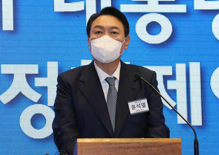 ▲ 국민의힘 윤석열 대선 후보가 14일 오후 서울 여의도 CCMM빌딩에서 열린 한국여성경제인협회 전국총회에서 축사하고 있다. 2021.12.14 [국회사진기자단]