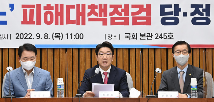 당정협의회는 이날 오전 국회에서 힌남노 피해대책 점검 당정협의회를 열고 국토부·행안부·기획재정부·금융위원회 등 정부 부처별 제도적 보완책을 서두르겠다며 이같이 밝혔다.