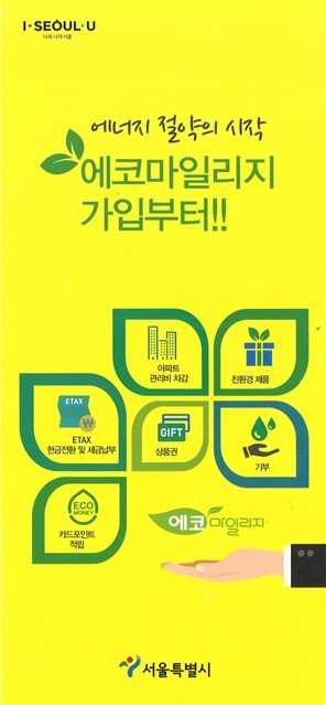 ‘에코마일리지’란 전기, 수도, 도시가스 등의 에너지를 절약하면 실적에 따라 현금처럼 쓸 수 있는 마일리지가 쌓이는 프로그램이다. 6개월 동안의 에너지 사용량을 최근 2년 평균과 비교해 5~15% 이상 절감한 경우 1만~5만 마일리지를 주고, 사업자 회원은 에너지 사용 규모별로 평가를 통해 최대 1,000만원의 인센티브를 제공한다. 적립된 마일리지는 전통시장 온누리상품권, 모바일 문화상품권 교환, 친환경 제품 구매, 아파트 관리비 등으로 다양하게 사용할 수 있다.
