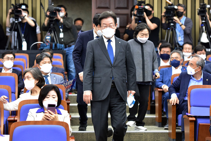 | ▲ 더불어민주당 이재명 대표가 5일 국회에서 열린 비상의원총회에 참석하고 있다. 2022.9.5 [국회사진기자단] |