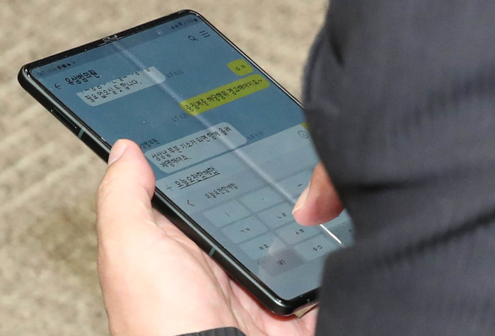이날 오전 국회 의원총회에서 사진기자 등에 의해 촬영·보도된 정 위원장의 휴대전화 화면은 정 위원장이 유 의원에게 "중징계 중 해당 행위 경고해야지요"라고 메시지를 보내자 유 의원이 "성 상납 부분 기소가 되면 함께 올려 제명해야죠"라고 답장을 보내는 내용을 담고 있다.
