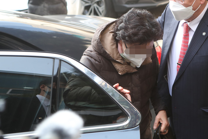 | ▲ 국민의힘 윤석열 대선후보의 장모 최모 씨가 23일 경기도 의정부시 가능동 의정부지방법원에서 법정으로 향하고 있다. 최씨는 2013년 경기도 성남시 도촌동 땅을 매입하는 과정에서 통장 잔고 증명서를 위조한 혐의를 받고 있다. 2021.12.23 [연합뉴스 제공] |