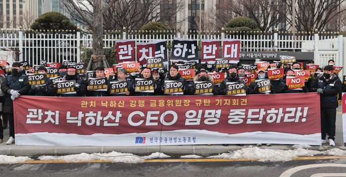 금융노조 '관치 낙하산 CEO 임명 중단하라'