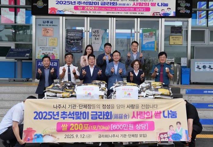 [코리아 이슈저널=김종오 기자] 전라남도 나주시의 주요 기관단체장 모임인 ‘금라회’가 추석 명절을 맞아 관내 어려운 이웃을 위한 백미(10kg) 200포대(약 600만 원 상당)를 나주시에 기탁했다.