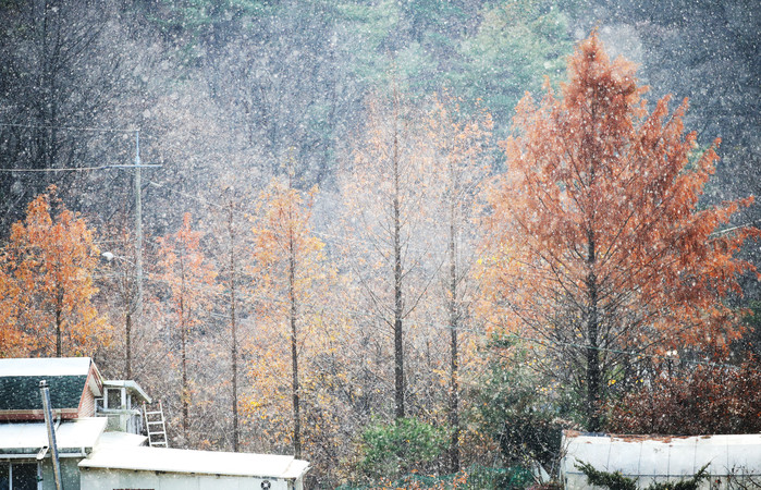 [열린의정뉴스 = 김윤영 기자] 절기상 소설인 22일 오후 경기도 용인시 처인구 이동읍 한 마을에 눈이 내리고 있다. 2021.11.22