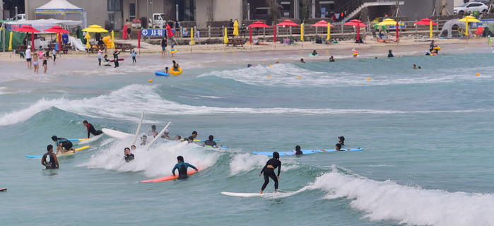 말복 파도 즐기는 서퍼들