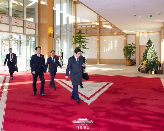[코리아 이슈저널=최성일 기자] 이재명 대통령이 26일 청와대 복귀를 앞두고 용산 대통령실로 마지막 출근을 하고 있다.