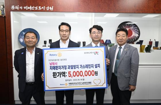 최경식 남원시장은 “치매 환자 가정의 화재 예방과 안전관리에 동참해 준 국제로타리3670지구 남원로타리클럽에 깊이 감사드린다”며, “이번 기부가 안전한 주거환경 마련뿐 아니라 민관이 함께 만드는 ‘안전한 남원’의 모범 사례가 되길 바라며, 앞으로도 시민의 안전과 복지를 위해 최선을 다하겠다”고 밝혔다.