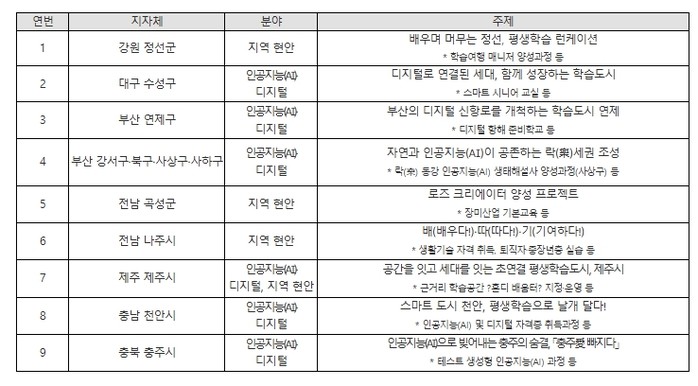 기존 평생학습도시 9곳을 인공지능, 고령화, 지역 산업 등으로 특화·재설계