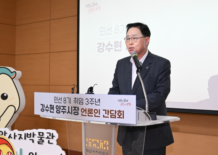 [코리아 이슈저널=홍춘표 기자] 양주시가 16일, 민선8기 3주년을 맞아 ‘언론인 간담회’를 열고 지난 3년간의 여정을 돌아보고, 남은 1년의 목표와 방향을 공유하는 자리를 마련했다.