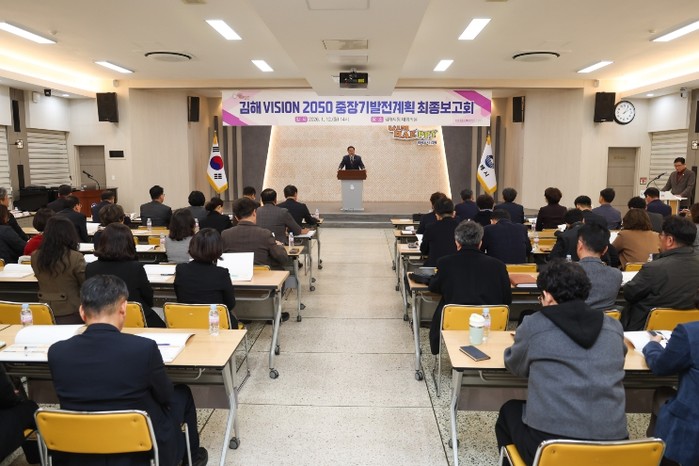 시는 12일 홍태용 시장과 간부공무원 등 60여 명이 참석한 가운데‘김해 VISION 2050 중장기 발전계획’ 최종보고회를 개최하고, 도시의 미래를 바꿀 핵심 전략을 공식 발표했다.