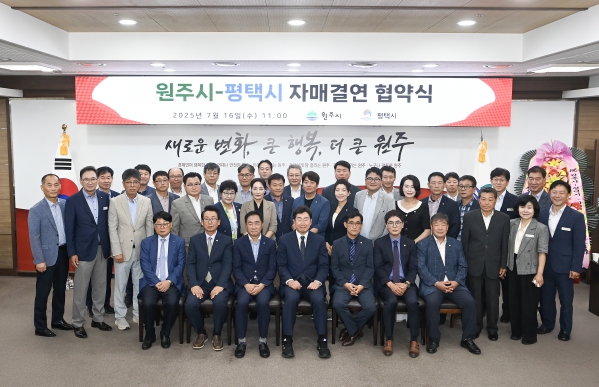 [코리아 이슈저널=최제구 기자] 원주시는 16일 오전 11시 시청 10층 대회의실에서 평택시와 자매결연 업무협약을 체결했다.