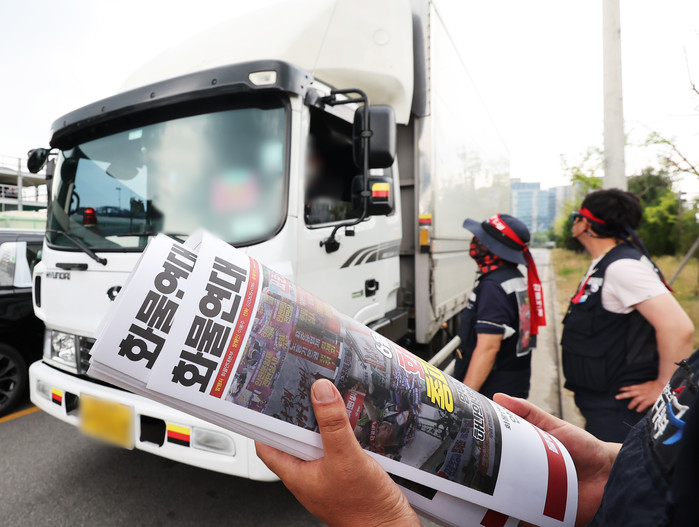 전국민주노동조합총연맹(민주노총) 산하 공공운수노조 화물연대본부는 화물자동차 안전 운임제 일몰 폐지 및 확대, 고유가에 따른 운송료 인상 등을 요구하며 7일 0시부터 무기한·전면 총파업에 돌입했다. 2022.6.8